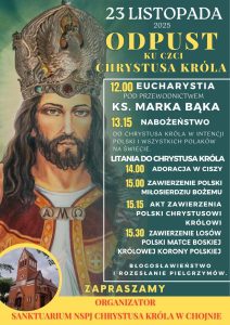 Króluj w naszej ojczyźnie. Spraw aby sprawiedliwość, prawda i miłość stały się fundamentem życia społecznego. Uwolnij nas od nienawiści, podziałów i niepokojów. Króluj w całym świecie. Niech Twoje królestwo: królestwo prawdy i życia, królestwo świętości